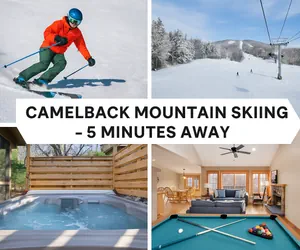 ☀Camelback Mountain Resort (1 mile away) – Skiing, snowboarding, and Camelbeach Waterpark in the summer.
